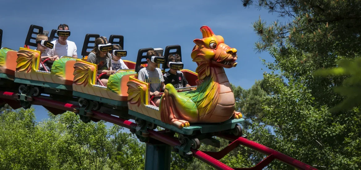 At Erlebnispark Schloss Thurn in Heroldsbach, the dynamic stagings by the horse-stunt team Arturius bring medieval flair to life in a thrilling blend of knights, cowboys, and horseback action — all centered around the charming mascot Dinolino.